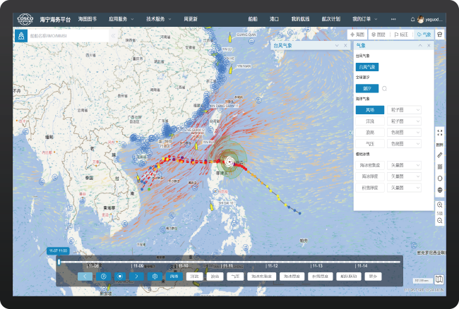 航运气象导航服务为远洋商船、科考船等提供大气预报、海洋预报等精细化的海上气象导航服务,提供最短路径、最短耗时、最省油耗、最舒适等各类路径规划。